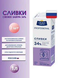 Сливки 34% для взбивания натуральные кондитерские 2шт по 1 л