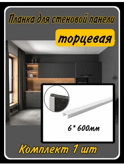 Планка для стеновой панели 6мм торцевая белая 600 мм