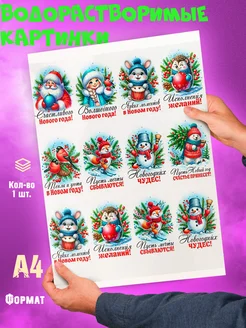 Водорастворимые картинки № 779 Новогодние 7*5 см 1 лист