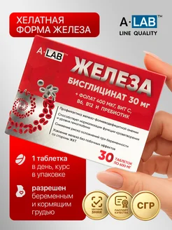 БАД «Железа бисглицинат+Фолат+вит С, В6, В12 и Пребиотик»