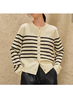 Кофта белая кардиган в полоску