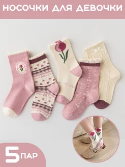 Носки детские для девочки набор 5 пар высокие с рисунком