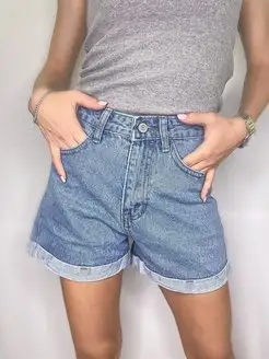 Шорты джинсы женские высокая посадка бермуды летние обтягива…