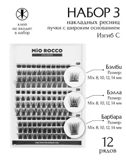 Накладные ресницы пучки с широким основанием набор3 8-14 мм