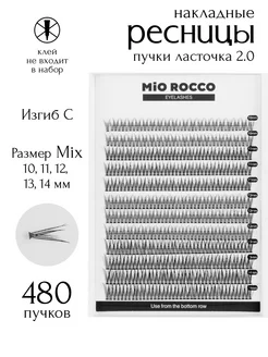Накладные ресницы пучки Ласточки 2.0, изгиб С, 10-14 мм