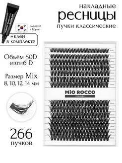 Накладные ресницы пучки 50D, изгиб D, 8-14 мм, с клеем