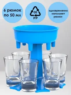 Подставка диспенсер для розлива напитков, 6 рюмок по 50 мл