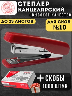 Степлер канцелярский бордовый и скобы №10, 1000 шт