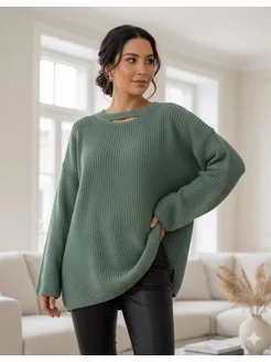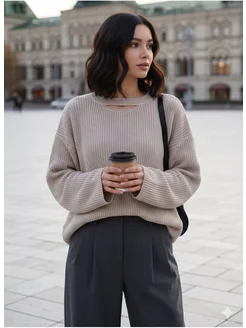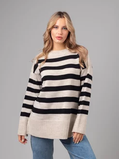 Свитер в полоску тонкий оверсайз удлиненный вязаный