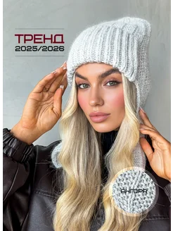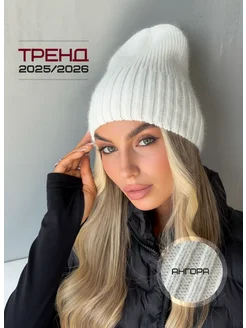Шапка из ангоры вязаная без отворота