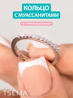 Кольцо с муассанитом натуральным женское со стразами