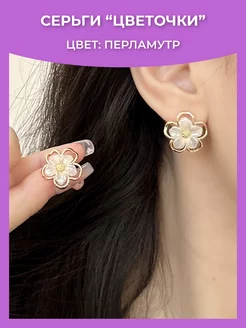 Серьги цветочки гвоздики перламутровые сережки бижутерия