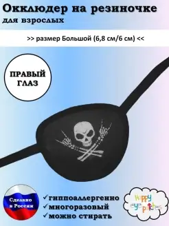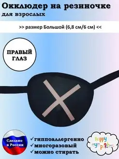 Пиратская повязка на один глаз, окклюдер на резинке взрослый