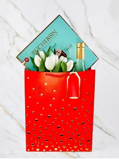 Подарочный пакет большой 26х32 с сердцами