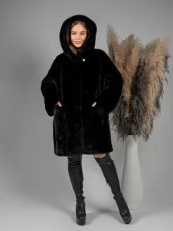 Дубленка зимняя двухсторонняя с капюшоном шуба