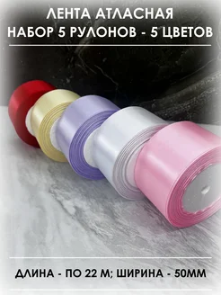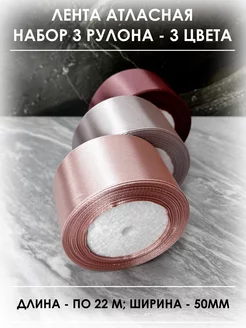 Лента атласная 5 см бежевая красная розовая набор широкая