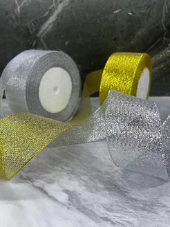 Лента парчовая золотая и серебро 4 см набор для подарков