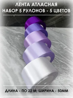 Лента атласная 5 см фиолетовая сиреневая белая набор широкая