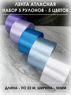 Лента атласная 5 см фиолетовая синяя голубая набор широкая