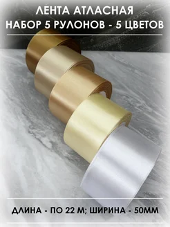 Лента атласная 5 см бежевая золотая коричневая набор широкая