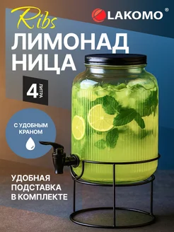 Лимонадница с краном стеклянная, диспенсер для напитков 4 л