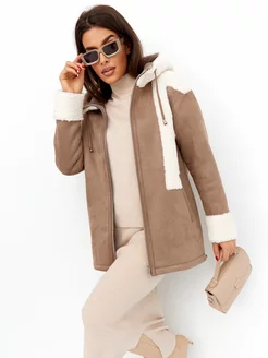 Пальто двусторонние с капюшоном экомех оверсайз тедди