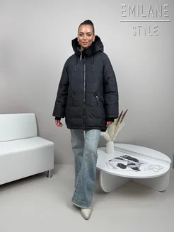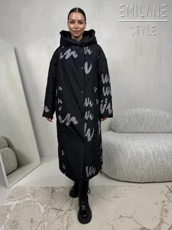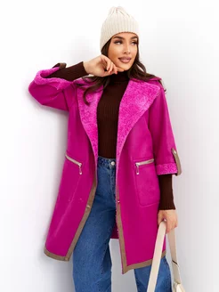 Пальто двусторонние длинное с капюшоном экомех оверсайз