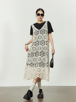 Платье вязаное миди кроше в комплекте