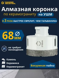 Коронка по керамограниту 68 мм, вакуумная пайка, M14