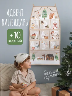 Детский тканевый новогодний адвент календарь с кармашками