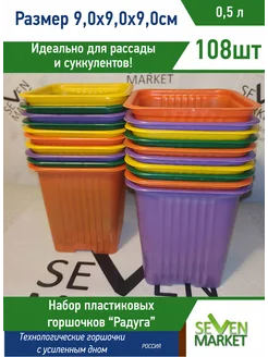 Набор квадратных пластиковых горшочков "Радуга" 0,5л 108 шт