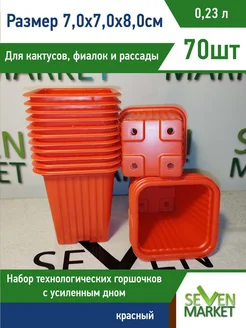 Горшок пластиковый 0,23л красный квадратный 70 горшочков