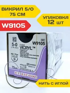 Шовный материал для хирургии Викрил, нить с иглой W9105 12шт