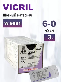 Шовный материал Викрил 6-0 W 9981 Vicryl 3 шт