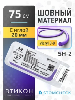 Шовный материал Vicryl 3-0, 75 см с иглой 20 мм (SH - 2)