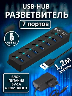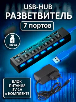 USB разветвитель хаб 3.0 на 7 портов + блок питания