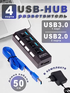 USB разветвитель 3.0 на 4 порта + блок питания 1А