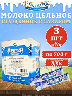 Молоко цельное сгущенное с сахаром 8,5%, 300 стиков по 7 г