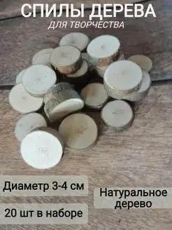Спилы дерева для творчества, диаметр 3-4 см, набор 20 шт