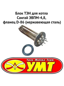 Блок ТЭН для котла Сангай ЭВПМ-4,8, фланец D-86 нерж. ст
