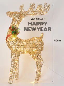 Новогодняя светящаяся фигура Олень Деда Мороза с санями