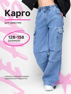 Джинсы карго широкие подростковые на резинке