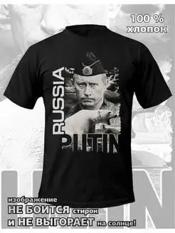 Футболка чёрная с президентом Путиным в пилотке (ВМФ)