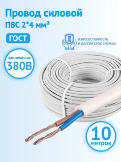 Провод силовой медный 10 м ПВС 2*4 мм²