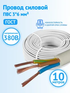 Провод силовой медный 10 м ПВС 3*6 мм² ГОСТ