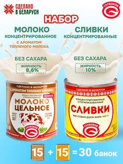 Молоко концентрированное и сливки, 15+15 банок, набор