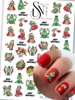 Наклейки для ногтей новогодний гринч