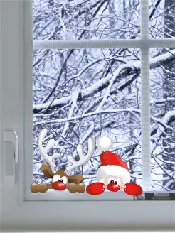 Новогодние наклейки на окна для украшения Новый год 2025