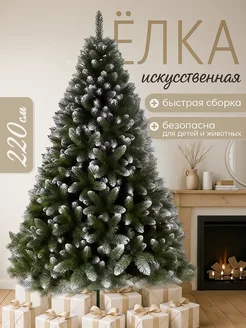 Елка искуственная 220 см новогодняя заснеженная на подставке