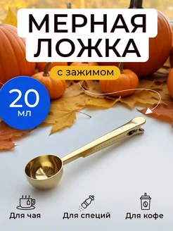 Золотая маленькая мерная ложка для кофе с зажимом